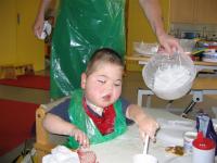 The next is one of the children sitting around a table. Max has his back to the camera but the little boy sitting opposite has a trachy too. Apparently the two of them play very well together, even though normally the other little boy won’t share toys with his siblings. The next is of the two of them playing together. The next two are of Max’s trying to put icing and decorations on some biscuits. He got icing everywhere, even on his eyelashes, but he had such fun!